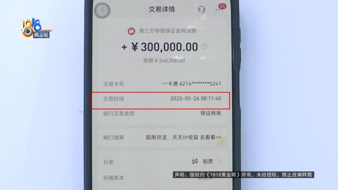 王先生住在嘉兴,转账记载显现5月26号上昼8点13分,他把30万转给了一位杨先生,和他从股票账户提钱的时辰进出一分多钟。