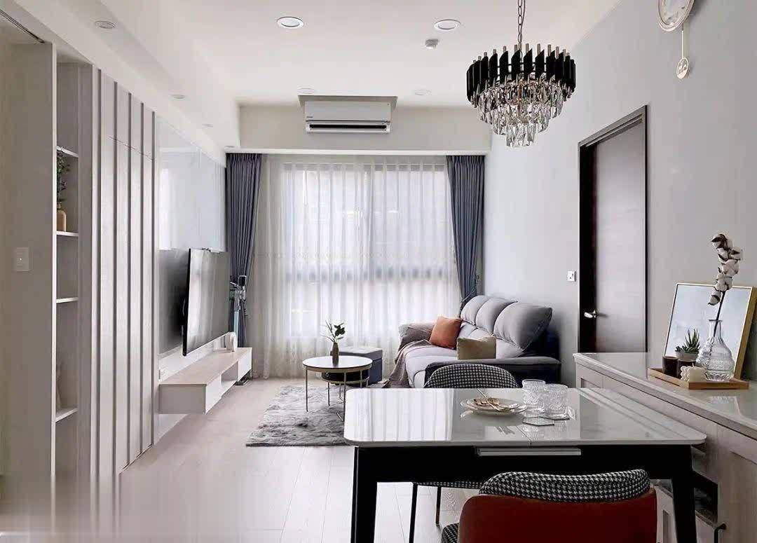 客厅面积不大,是以装修时尽量精真金不怕火,幸免过度装修。电视墙不作念造型,而是袭取了岩板的打算,显得很大气。电视柜悬空利于卫生清洁。