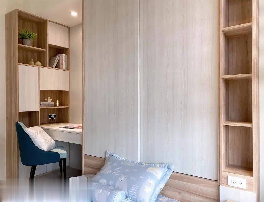 床铺刻意不摆放床架开云体育(中国)官方网站,胜利放在地板,小一又友长大后能有更天真空间从头意象布局,床头处是滑门式衣柜,节约空间且得志收纳功能。