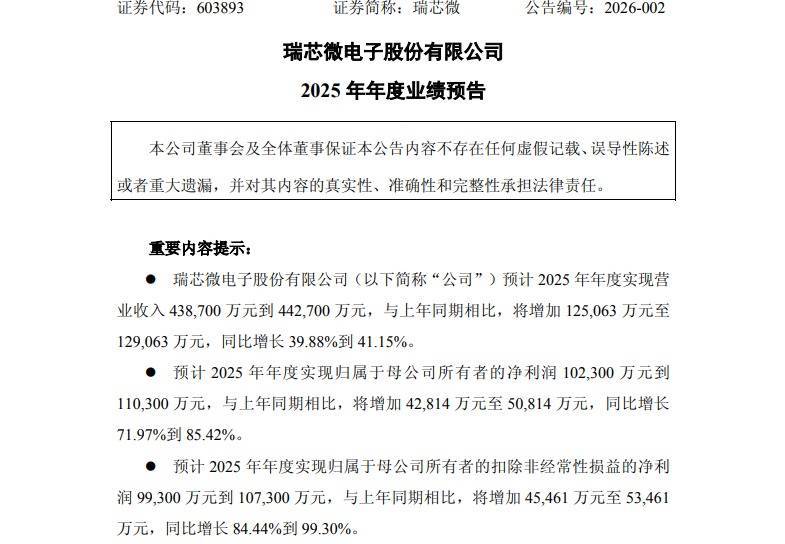 1月26日,瑞芯微电子股份有限公司(以下简称“瑞芯微”)浮现2025年年度功绩预报。2025年瑞芯微野心功绩杀青特出式增长,多项中枢观念再立异高。收尾1月26日收盘,瑞芯微报收186.78元/股,市值786.25亿元。